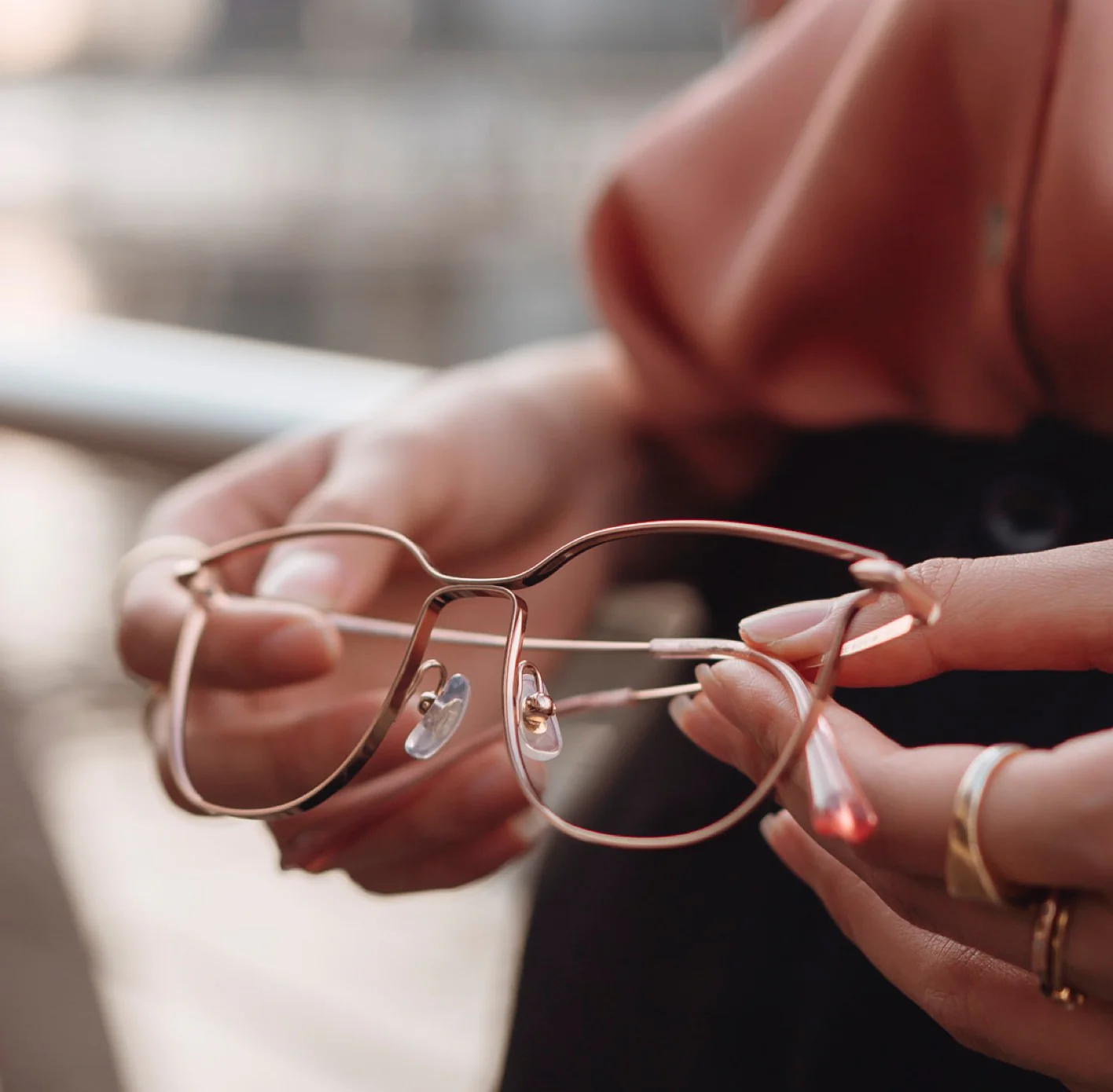 Perfect for everyday wear, this chic piece is easy to match because of its simple, yet elegant design. Its rose gold or gold accents add character to the overall eyewear, crafted with high quality materials including titanium.